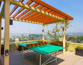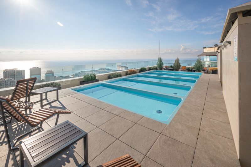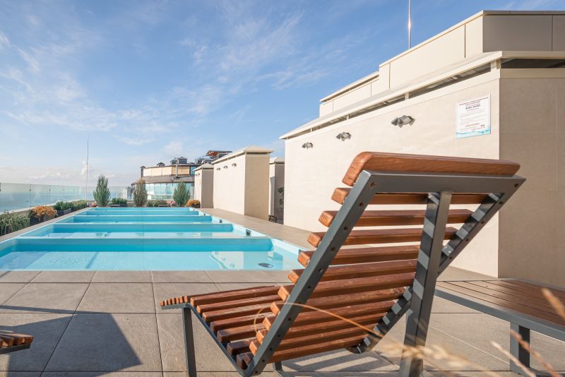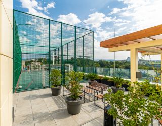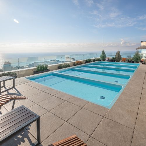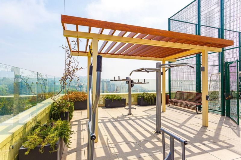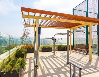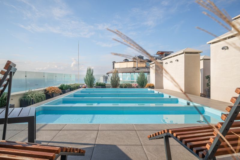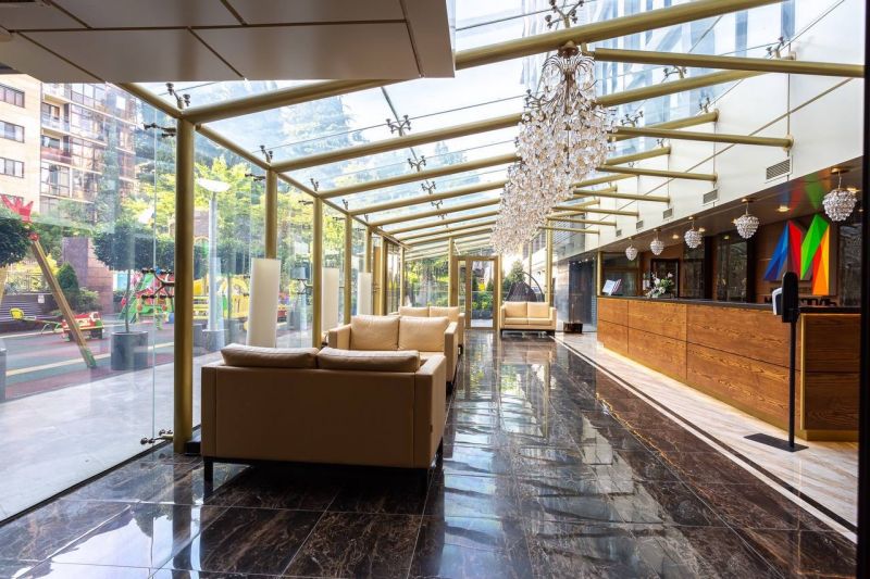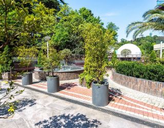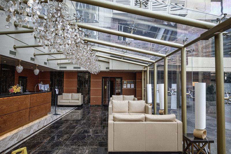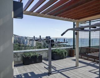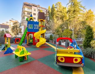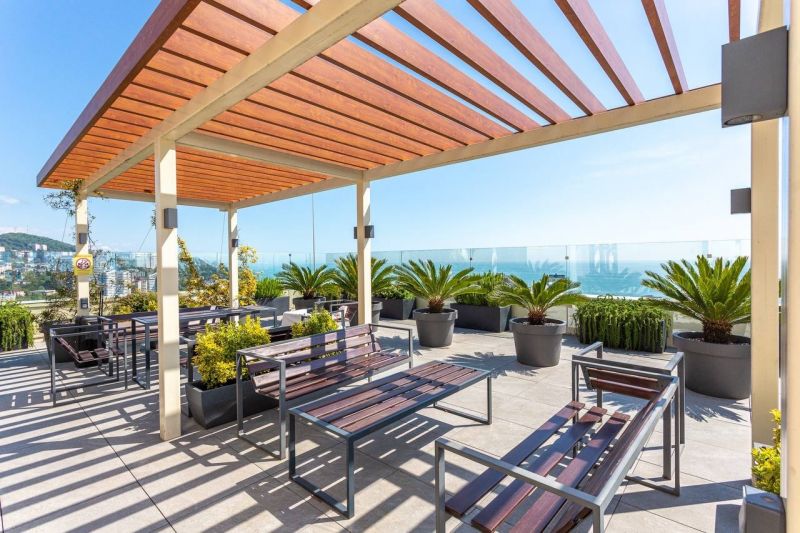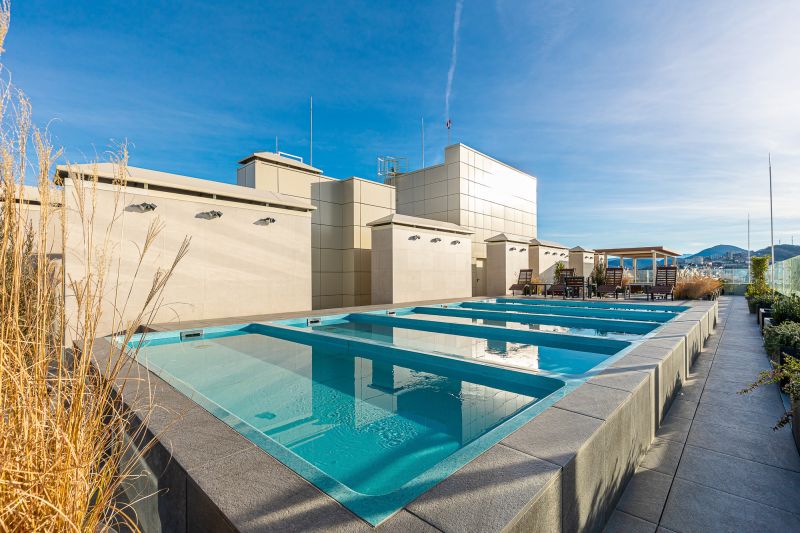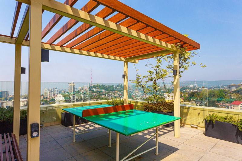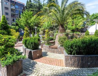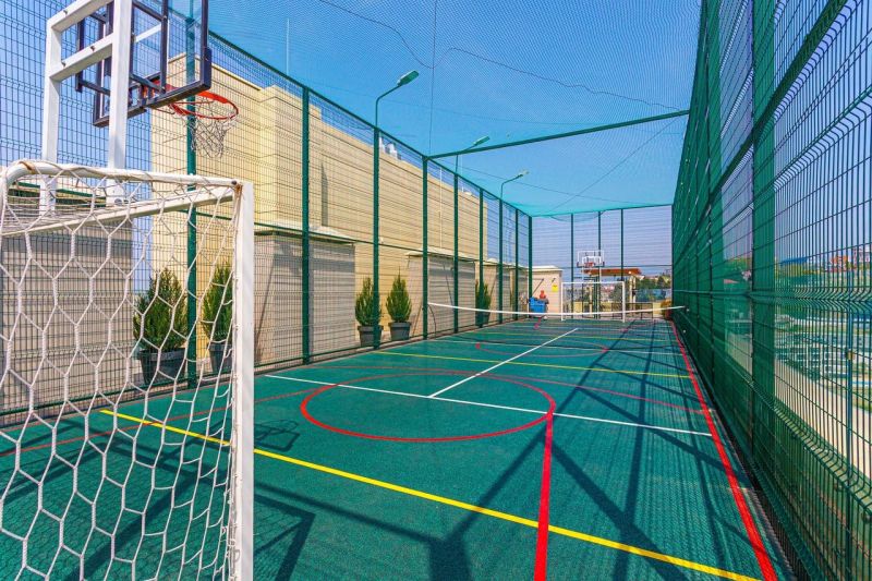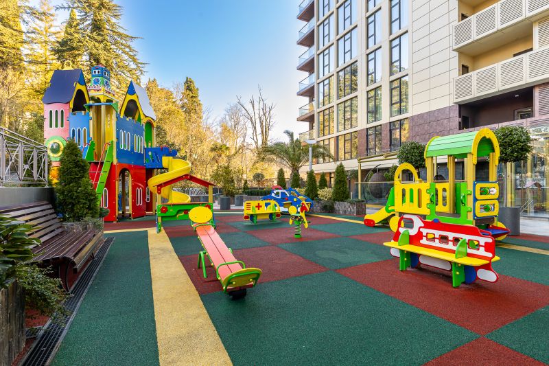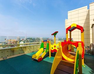 На территории с ландшафтным дизайном, в котором использованы разнообразные растения, создана уютная лаунж-зона с фонтаном, есть детская игровая площадка, настольный теннис, спортивная площадка, уличные тренажеры, открытый бассейн, парковка (по запросу).